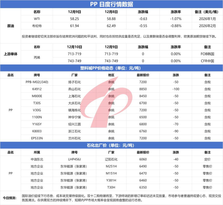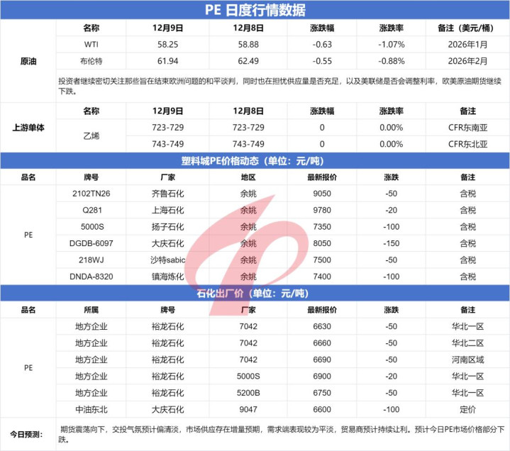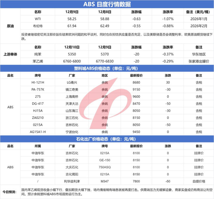 涨盈配 塑料行情12.10|通用料跌跌不休! ABS、PE下跌!